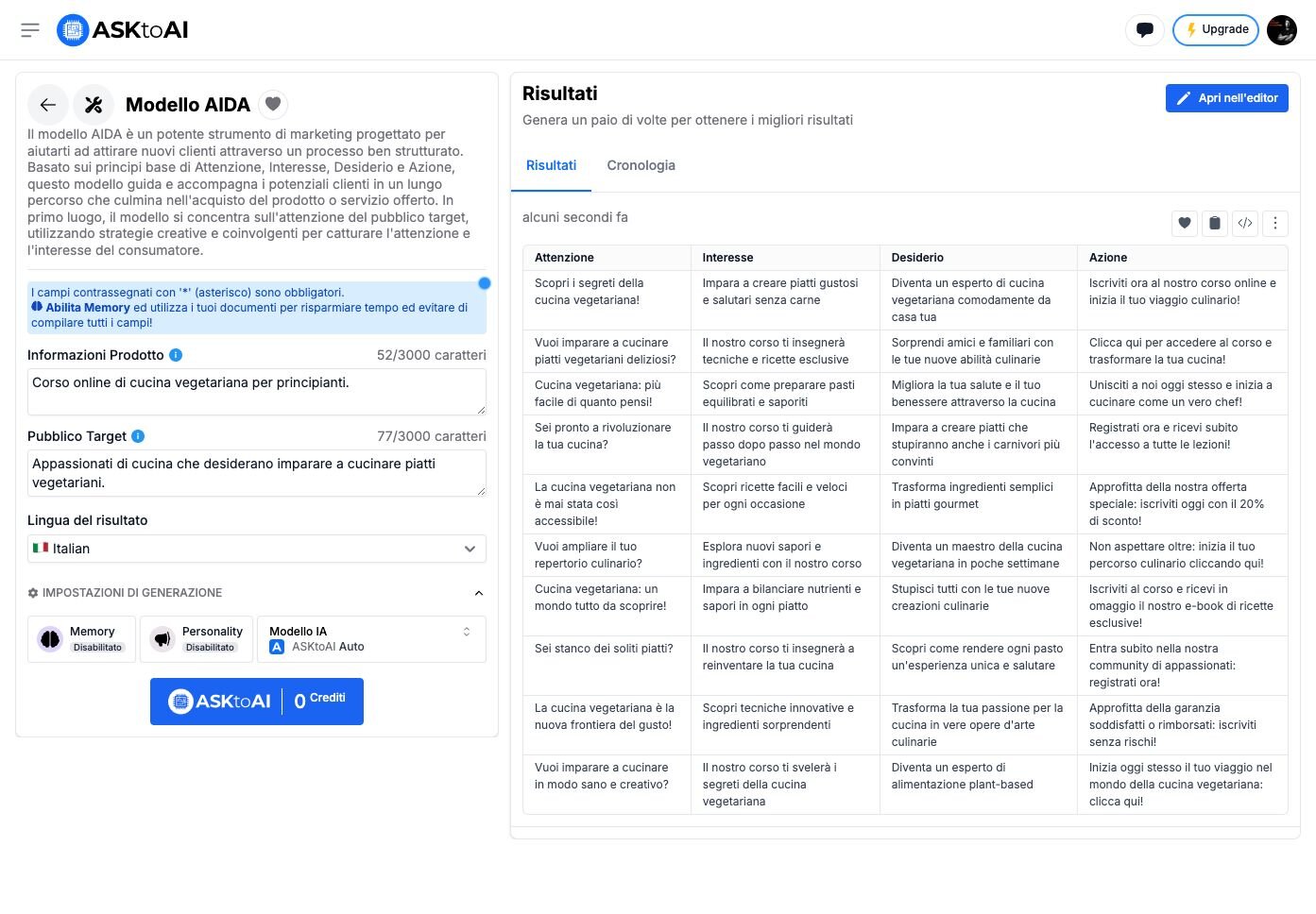 Abbandona le strategie casuali e affidati alla potenza del Modello AIDA con ASKtoAI. I tuoi tassi di conversione ti ringrazieranno!